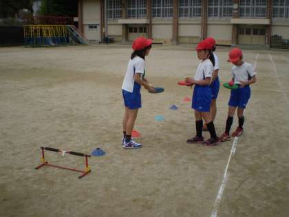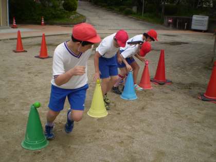 5年生は運動会でバラエティ走をします。簡単に言うと障害物走です。