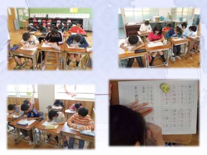 今日は,文字を書くときの姿勢や,鉛筆の持ち方,文字の形など,書写の学習をする際の基本について確かめました。鉛筆の持ち方が,自己流になっている子どもたちが多く,正しい持ち方をすると,「書きにくい。」との反応が返ってきました。学習を通して書くときの姿勢についても見直せると良いですね。