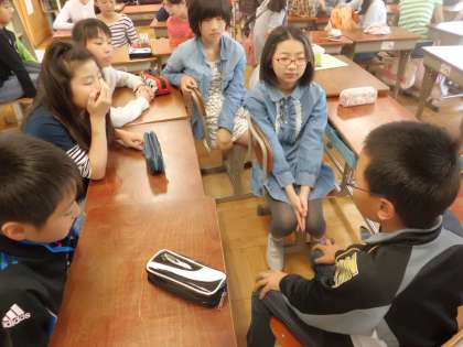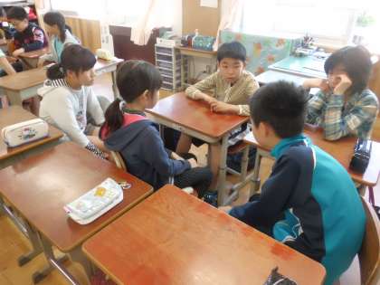 朝の会では,グループでスピーチをしています。みんな感想を言い合ったり,質問をしたりと楽しそうに取り組んでいます。
