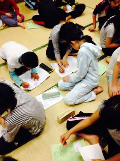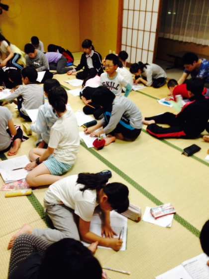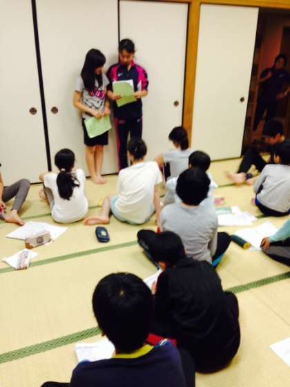 反省会ではおもいでを振り返りつつ,明日がんばろうと思うことを一生懸命考えています。ここで考えたことが,明日に生かされるといいですね。