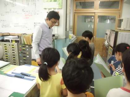 学校探検に向けての取り組みが進んでいます。今日は,自分たちが担当するお部屋は何をするところなのかを教えてもらいに行きました。「教材資料室」や「書庫」など,普段は子どもたちには関わりのないお部屋についても詳しく教えてもらいました。1年生にきちんと教えられそうかな?