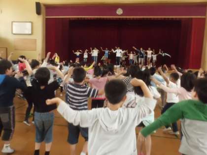 今日,初めて運動会の全校ダンスの練習がありました。サンバのような振り付けがとっても楽しいダンスで,みんな笑顔で踊っていました。今日のところまでは,しっかりと覚えられたかな。次回も楽しみですね。