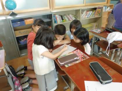 グループで話し合って,三錦小学校について知ってもらえるような出し物を考えています。どのような出し物になるのか楽しみです。