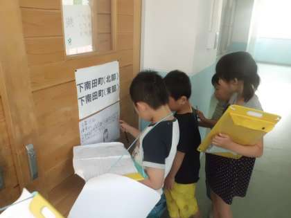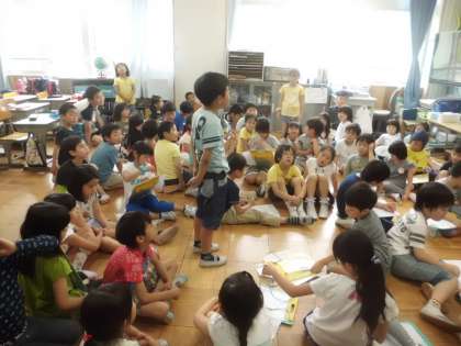 いよいよ学校探検本番です。はじめの言葉やルール確認をした後,1年生と仲良く手をつないで出発です。いろいろな場所で看板を読んであげたり,教室を案内してあげたりしながら優しく声をかける姿が見られました。一緒にクイズやミッションもクリアして,とても仲良く過ごせたようです。さすが2年生ですね。最後に感想を言い合って終了しました。1年生も2年生もみんな終始にこにこしていたのが印象的でした。学校探検大成功!!