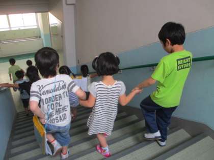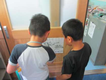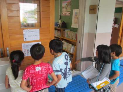 2年生のお兄さん,お姉さんと一緒に,学校探検をしました。