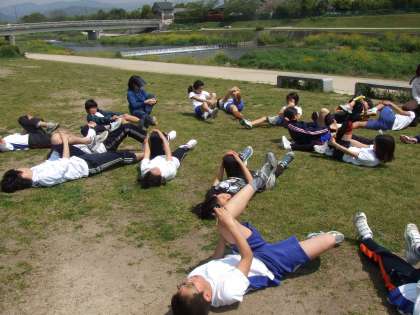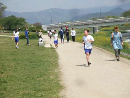 ゴールデンウィーク中にもかかわらず,元気に走ろう会に参加です。とても天気のいい中,賀茂川河川敷で練習を行いました。5年生にとっては,初めての賀茂川河川敷での練習です。