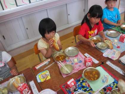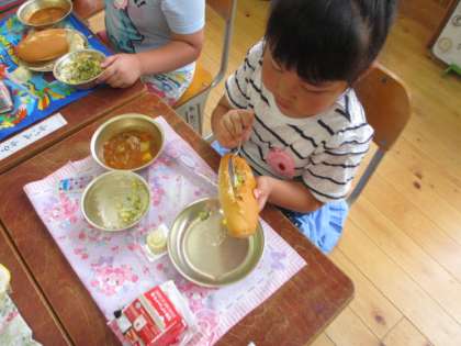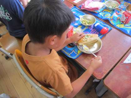 悪戦苦闘しながらも,楽しそうに食べていました。