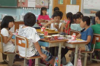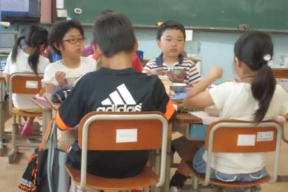 美味しい新献立を味わいながらも,話すことに夢中になっている子どもたちでした。