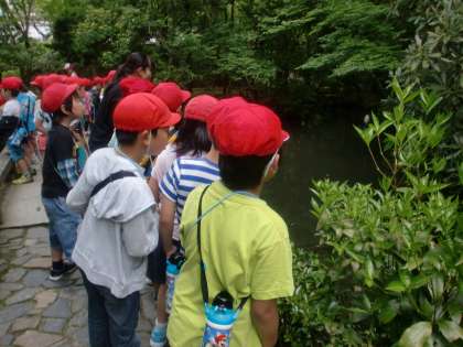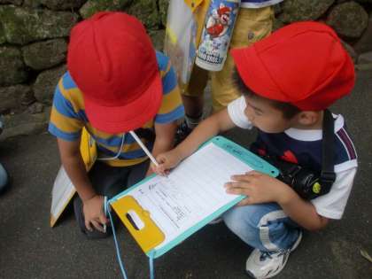 今日は2年1組のお友達と一緒に「町たんけん」へ行きました。探検中に見つけた鯉について書いていると,一緒に鯉を見ていた子が「どこで見つけたか」など書き方を教えてくれました。たくさんの友達と一緒に探検をしたことで,普段何気なく通っている道でツバメの巣を見つけたり,きれいに咲いたアジサイの花を見つけたりして,新たな発見をすることができました。来週の「町たんけん」も今からとても楽しみにしています。