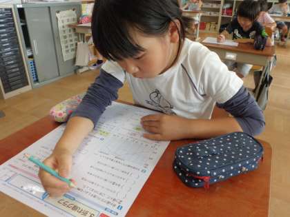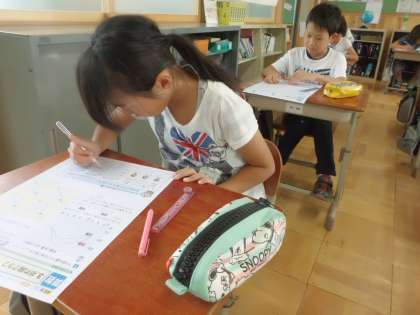 今日は算数の時間に「折れ線グラフ」のテストをしました。
