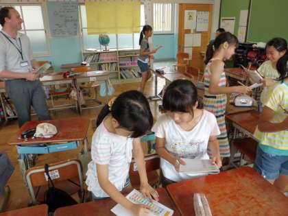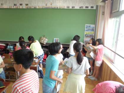 外国語活動の時間に,英語で友だちの誕生日を尋ねました。どのように言えばよいのかをALTに確認しながら楽しく活動することができていました。