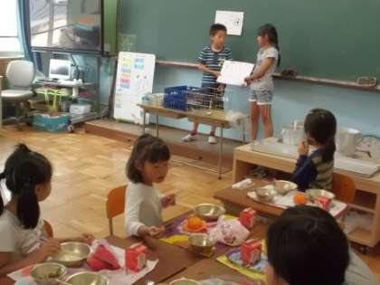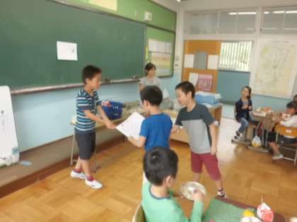 今年度初めての「ふれあいの日」のお知らせに,5年生が来てくれました。5年生のお話にしっかり返事をしながら聴くことができました。来週の「ふれあいの日」が楽しみですね。