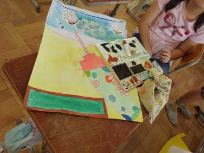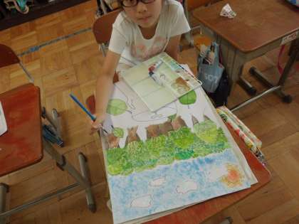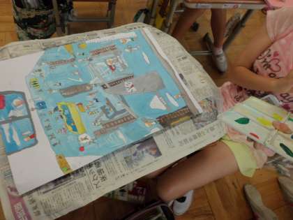 細かい部分にまでこだわって色をぬっている子どもたちが,一生懸命完成を目指して頑張っています。あと少しですね。