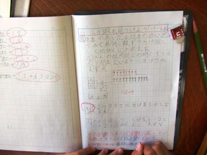 「公倍数のときも,2つ数字の倍数で共通しているものが,公倍数だったから,公約数も2つの数字の約数で共通しているものだと思います。」