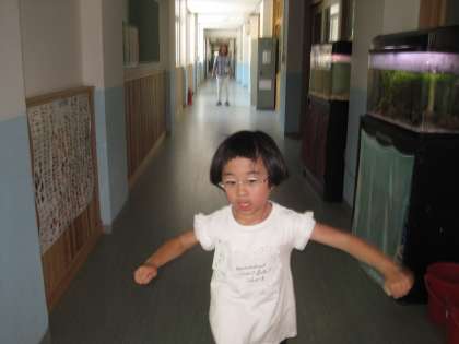 自立活動の時間に歩く練習をしています。初めにたんぽぽ学級で念入りにストレッチをして,校内で歩く練習をします。歩くことにだんだん自信がつき,先生が後ろにつかなくても一人で歩けるようになってきました。次は,歩いている途中に自分で「立ち止まる」ことが目標です。