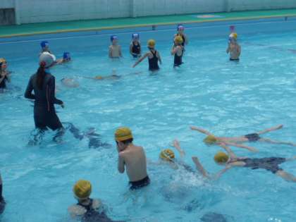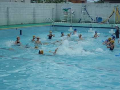 ようやくすっきりと晴れたよいお天気の中,水遊びを実施することができました。子どもたちも「暑いから早くプールに入りたーい!」と心待ちにしていた様子でした。前回からはちょっとレベルアップして,水に浮く練習やちょっとだけ泳ぐ練習も取り入れました。2年生は積極的に1年生に声をかけ,ポイントを教えてあげていました。水遊びも残すところあと少し。みんなでいっぱい楽しめるといいですね。