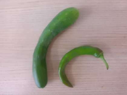 今年は花壇で育てている野菜の成長が芳しくなく心配していましたが,ようやく収穫をすることができました。収穫第一弾は万願寺とうがらしときゅうりです。スーパーで買うもののように形は整っていませんが,採れたてなだけあっておいしそうです。これからどんどん実がなって,収穫の喜びを味わえるといいのですが…。