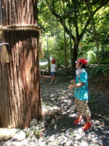 2年1組との交流学習で大豊神社へ生き物探しに行きました。暑さも気にせず虫を探すことに夢中になっていた子ども達。「カブトムシはいるかな。」「ちょうちょをつかまえたい。」と友達と一緒に虫のいそうなところを一生懸命探していました。捕まえたのは小さなカタツムリだけでしたが,色々な虫を見られたことに大喜びでした。学校に帰ってからも「虫探しに行ってきます。」と虫カゴを持って中庭へ・・・。しばらく虫探しに夢中になりそうです。