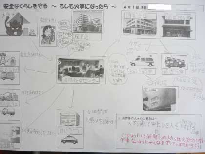 もし火事が起こったら・・・考えるとこわいけど,火事が起きたことを想像することから,どのようなつながりが見えてくるか,クラス全員で意見を交換しました!