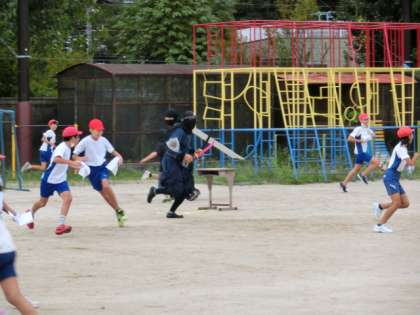 夏休み明け初日の5時間目に,みんなで楽しく「逃走中」をしました。