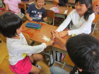 学習が終わってからも,それぞれで長さ比べを楽しんでいる子どもたちでした。