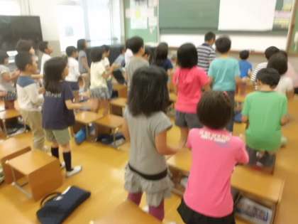 音楽科の学習で「朝のリズム」という歌を歌いました。休符がとても多い曲なので,その部分に手拍子や足踏み,膝うちを加えてリズムをとりながら歌います。はじめはゆっくりでも難しかった子どもたちでしたが,だんだん慣れてくるとリズムにのって拍を刻めるようになりました。体全体で音楽を表現するのは楽しいですね。