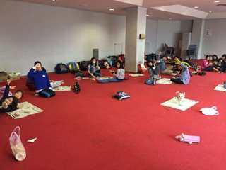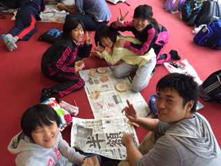 木のコースターを作ります。表面がなめらかでツルッツルのコースターを作るために,目が粗いやすりと目が細かいやすりの両方を使って,一生懸命磨いています。