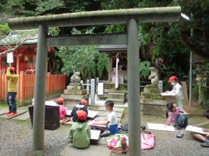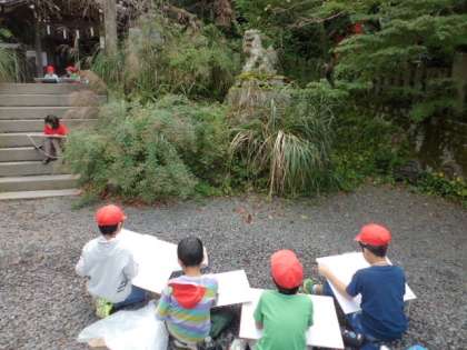 大豊神社に写生に出かけました。それぞれ絵に表したいと感じた場所に行き,神社の様子を描いていました。素敵な絵が仕上がることを期待しています。