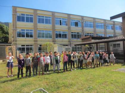 せっかくのよいお天気なので,外で音読をすることにしました。
