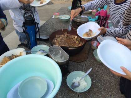 すき焼き風煮が完成しました。続いてご飯が炊きあがりました。