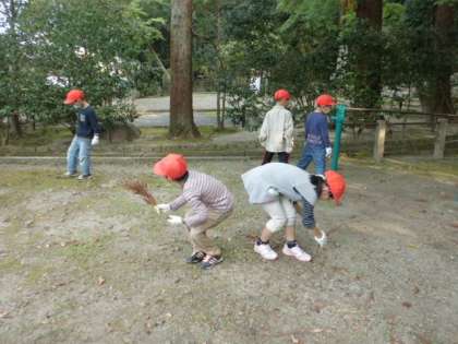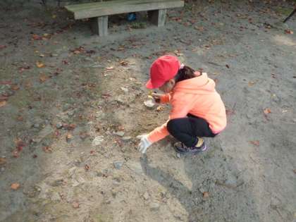 たてわり清掃に引き続き,たてわりグループでの活動です。子どもたちが普段よく遊んでいる公園などを中心に清掃活動を行いました。約30分間集中してがんばりました。学校に戻った後は,たてわり遊びを楽しみました。