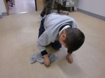 毎日使っている教室に感謝の気持ちをもち,気持ちよく新しい年を迎えられるように大掃除をしました。雑巾で床を磨くと「きれいになった!」と,喜んで教室の隅々まできれいに掃除をしてくれました。これで新しい年も頑張って学習ができそうですね。年末はお家の大掃除で活躍してくれることと思います。