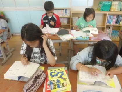 漢字辞典の使い方を学習しました。「音訓さくいん」「部首さくいん」「総画さくいん」の三つの引き方で調べたい漢字を探します。自分の名前に使われている漢字も調べてみました。見つかると「あった!!」と嬉しそうな子どもたちでした。