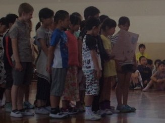 いよいよ本番を迎えました。1年生がクイズに答えてくれたり,寸劇に笑ってくれたりして嬉しかったようです。他の学年の出し物もとっても楽しみました。