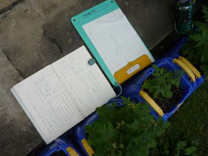 覚えきれない子どもたちは,教科書を持って中庭へ行き観察しました。