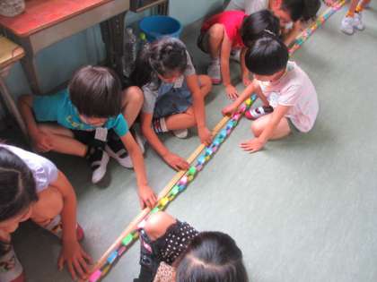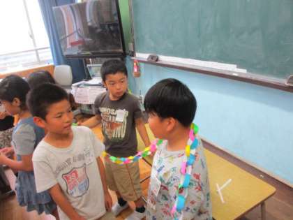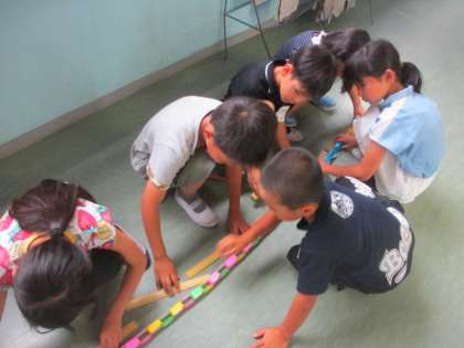 今日は,それを応用して,色紙を2cmの幅に切っていきました。