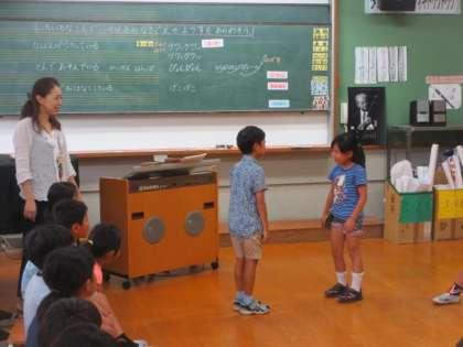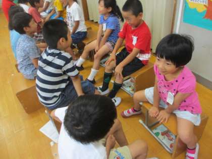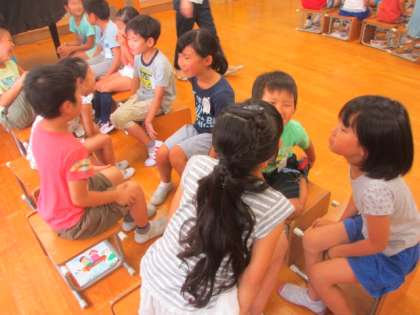 音楽の時間にカエルになって,まねっこをしたりお話をしたりしました。