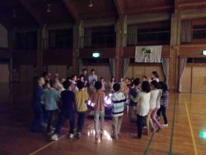 その灯火の明かりで、みんなで楽しくゲームをしたりダンスをしたり,山の家最後の夜をおもいっきり楽しみました!