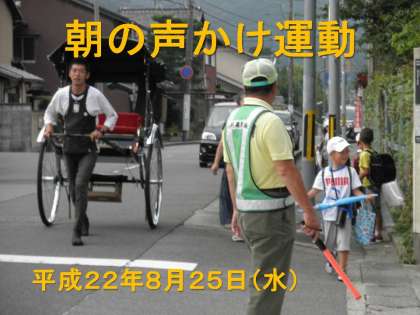 今日(8月25日)から前期の学習が再開されました。今朝はPTAの役員の皆様からお声かけをいただいて,校区内一斉に「朝の声かけ運動」をしていただきました。学校においでいただいて,子どもたちに「おはよう」と声をかけてくださったり,それぞれのおうちの前や通学路の横断歩道等で,登校する子どもたちの様子を見ていただいて声をかけてくださったり・・。
