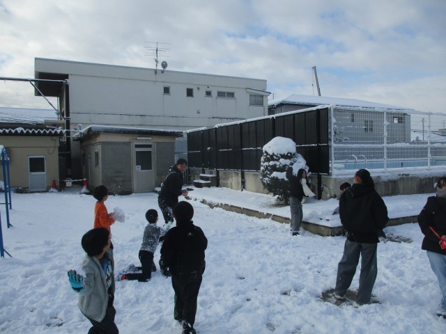雪玉を投げ合ったり、大きな雪だるまを作ったり、みんな思い思いの方法で楽しんでいました。