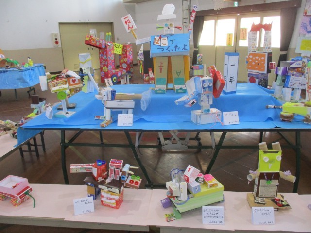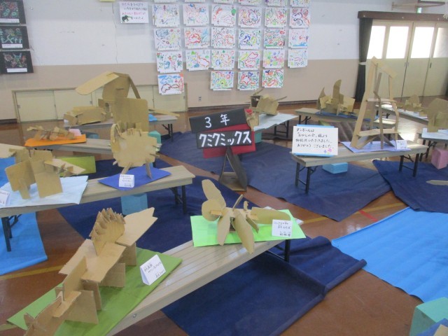 図工展が開催中です。各学年ともに、平面作品を1点と立体作品を1点、いずれも力作ぞろいです。会期は本日18時までとなっております。参観・懇談も兼ねて、ぜひお越しください。