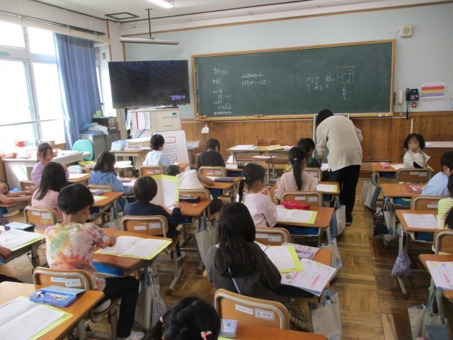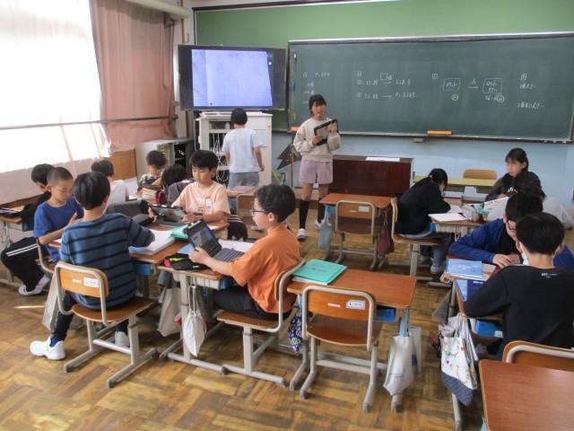 2年生と5年生は教室で課題に取り組んでいました。良い姿勢で、集中して書けている子が多いです。5年生の算数ではノートで教科書の問題に取り組む子、タブレットで学習アプリに取り組む子、それぞれ自分に応じた課題を選んで取り組んでいるようです。