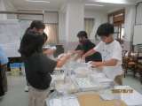 市内の花屋さんにご協力いただき、華道教室を行いました。 家から持ち寄った器に...