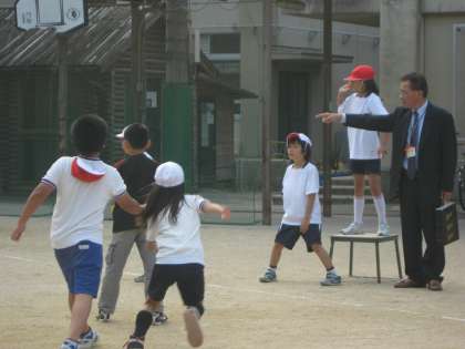 通りかかっては,いつも子どもたちに声をかけて下さる校長先生,愛情がいっぱい伝わってきます。子どもたちも次のプレーに生かそうと,校長先生のお話を真剣に聞いています。