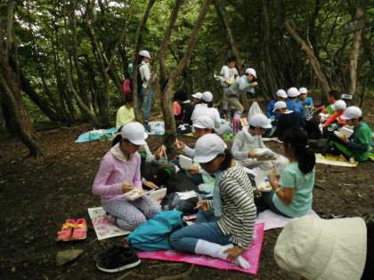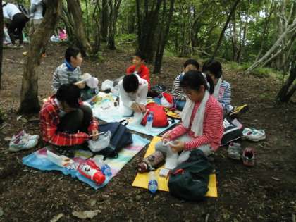 班ごとにお待ちかねのおにぎり弁当を食べました。