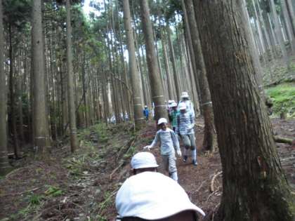 また、かつて、中学生が通学に使った道を通りましたが、とても険しい山道で、子供たちは、びっくりしながら歩きました。