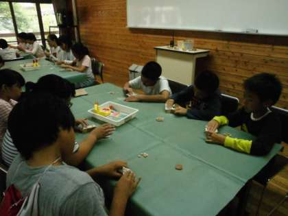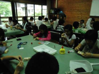 木でつくった小さなパーツを組み合わせて、ペン立てをつくります。