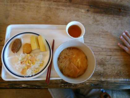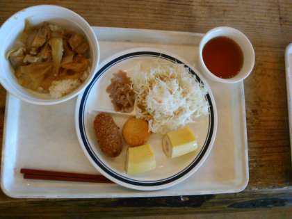 今日の献立は、とりてり丼かみそラーメンとごはんセットです。