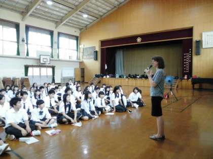 6年生が、日吉が丘高校の1年生と英語の交流をしました。