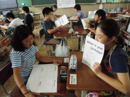 本日外国語活動の第5時をしました。自分のお気に入りのキャラクターや人物の誕生日を事前に調べてきて,調べてきた誕生日を紹介し合いました。とても楽しそうに交流していました。